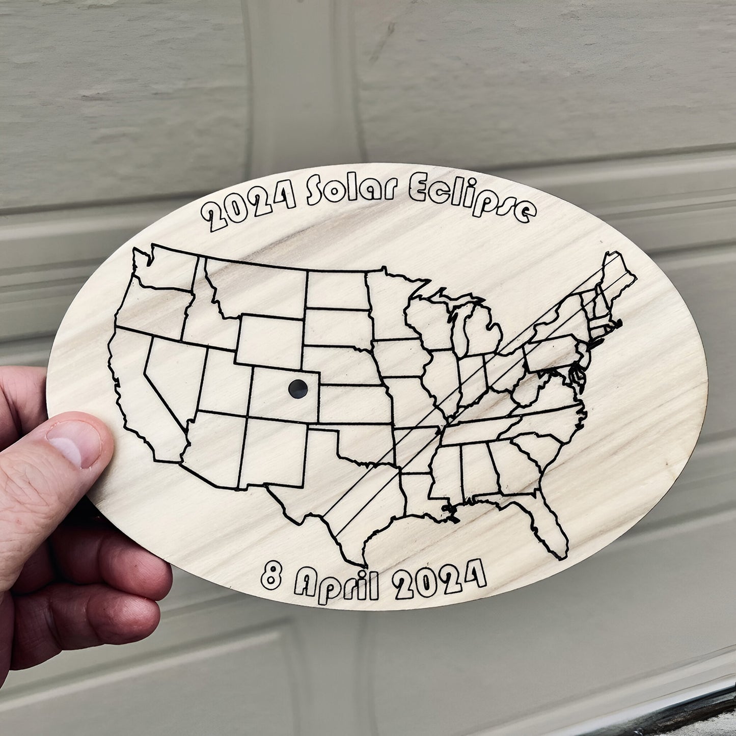 Safely observe the 2024 solar eclipse by making this souvenir pinhole viewer to project the image of the Sun onto a flat surface. Can be made from any compatible Proofgrade material (wood or acrylic) on the Aura & Performance Series. WARNING: Never look directly at the Sun through the pinhole viewer.