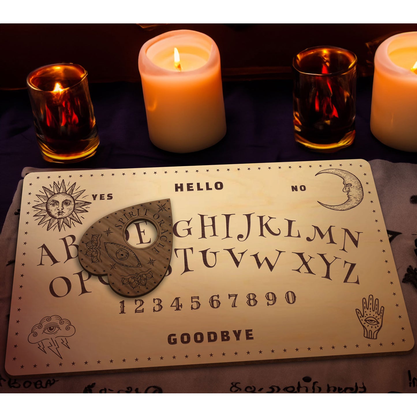 Under a mysterious moon, the spooky season is upon us. Relish in communing with the great beyond with your own Glowforge laser cut Spirit Board Set. Print as is or add your own supernatural messages. What will the spirits say to you? (* for entertainment purposes only!)