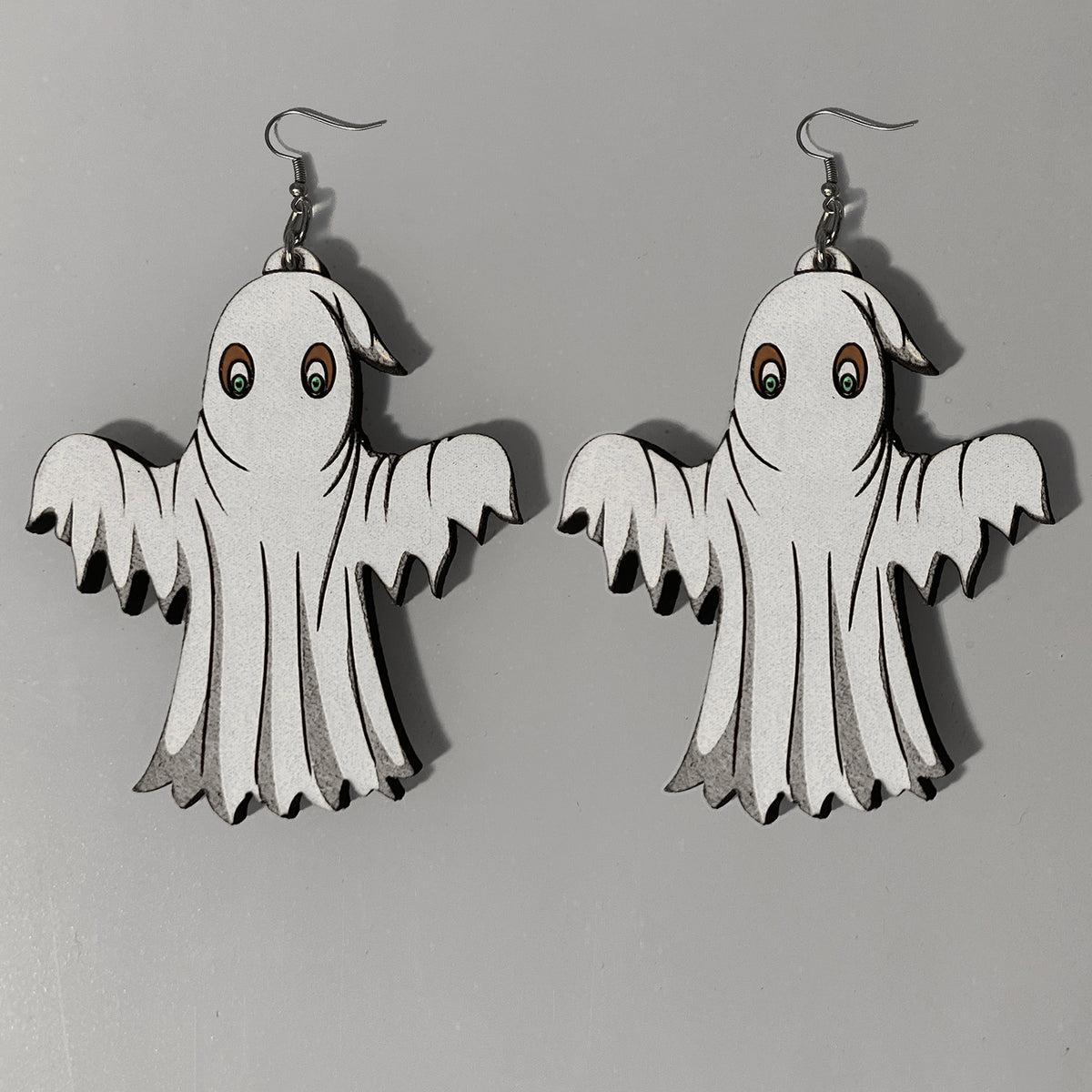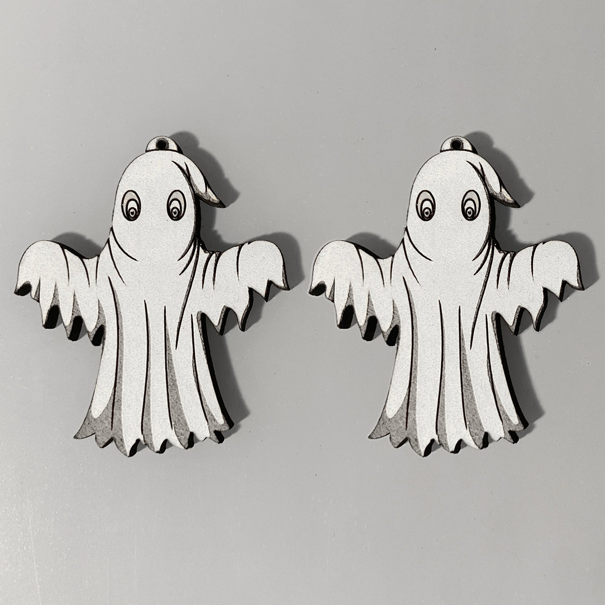 Embrace the spirit of the season with these whimsical ghost earrings. Laser-cut from medium hardwood, they offer a playful yet elegant nod to Halloween festivities.