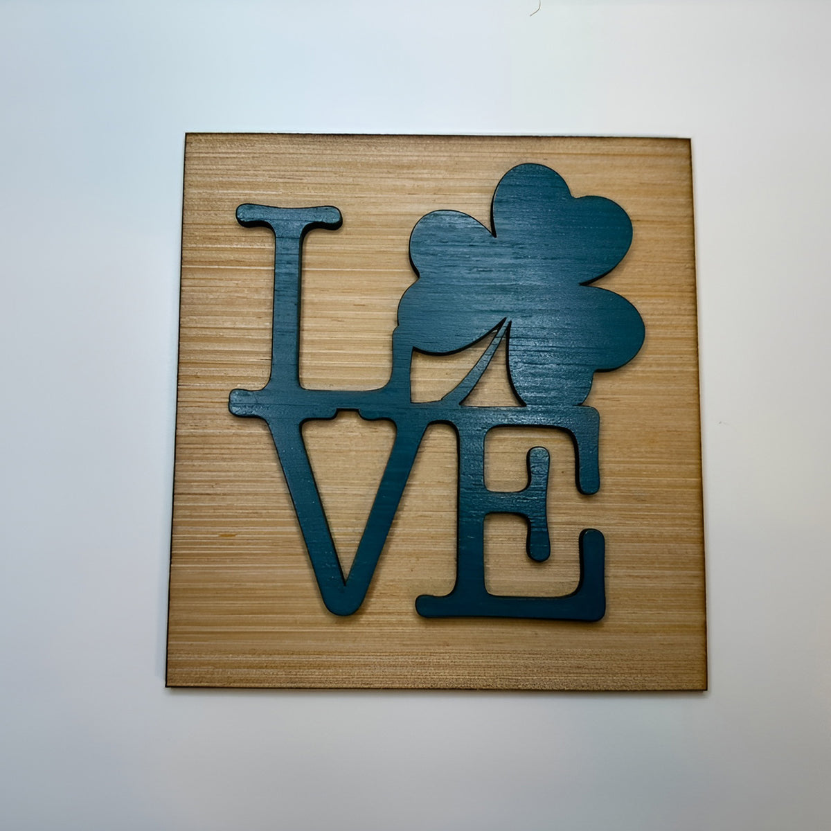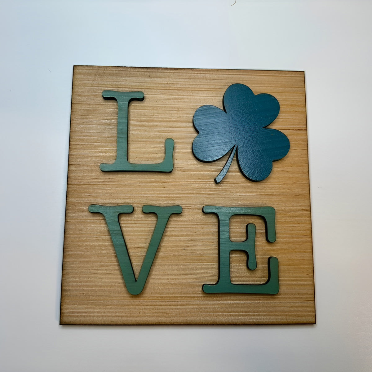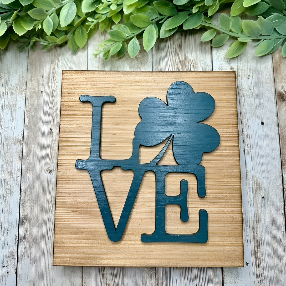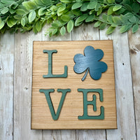 This "Love" shamrock wall sign or tiered tray sign is perfect for celebrating Irish heritage and St. Patrick’s Day.