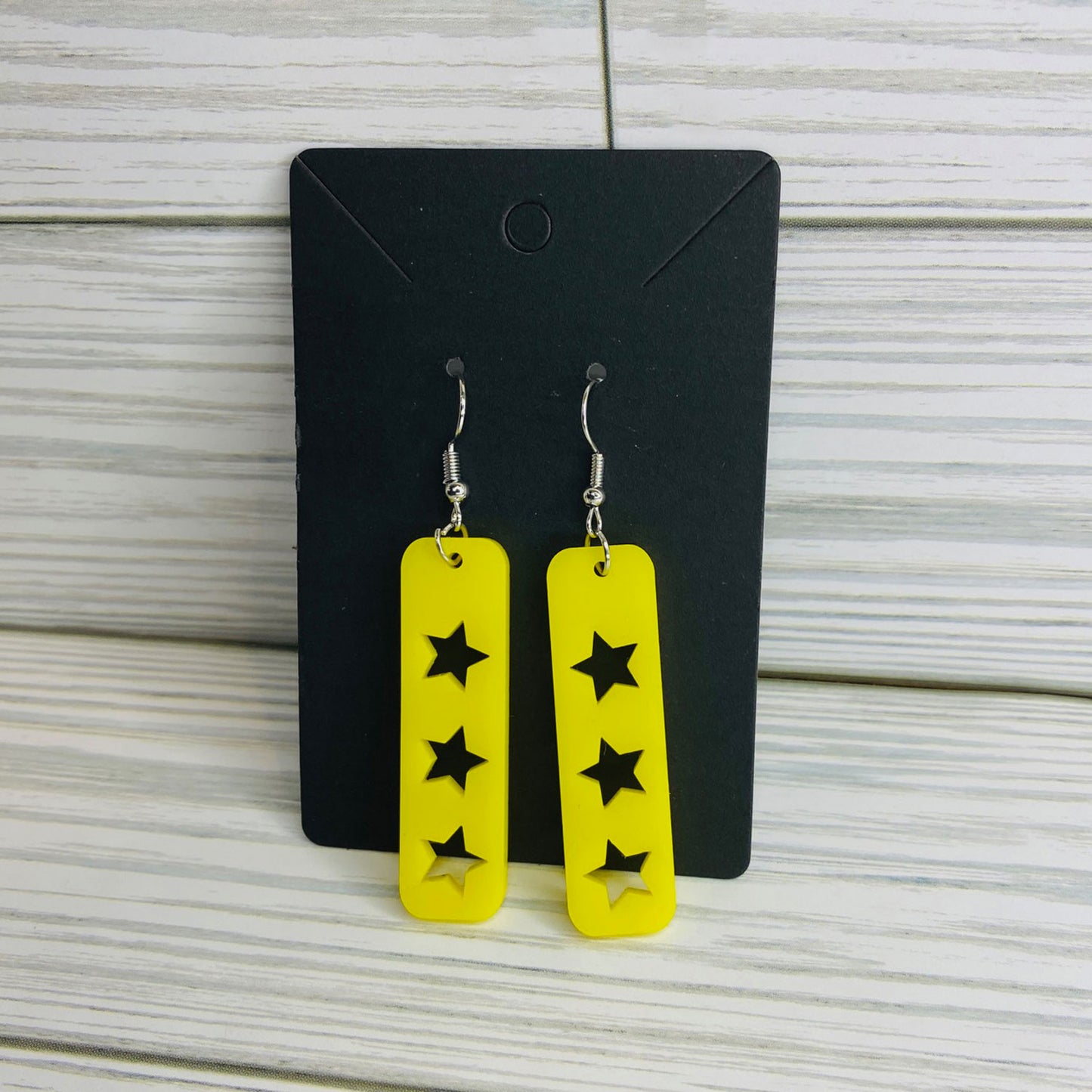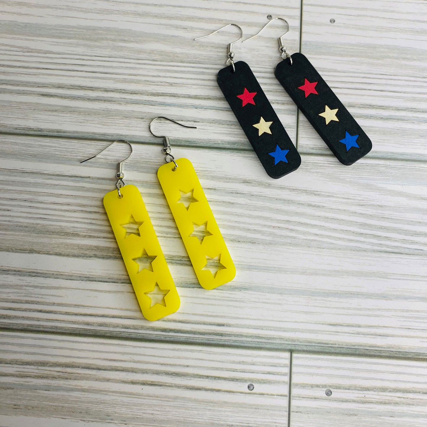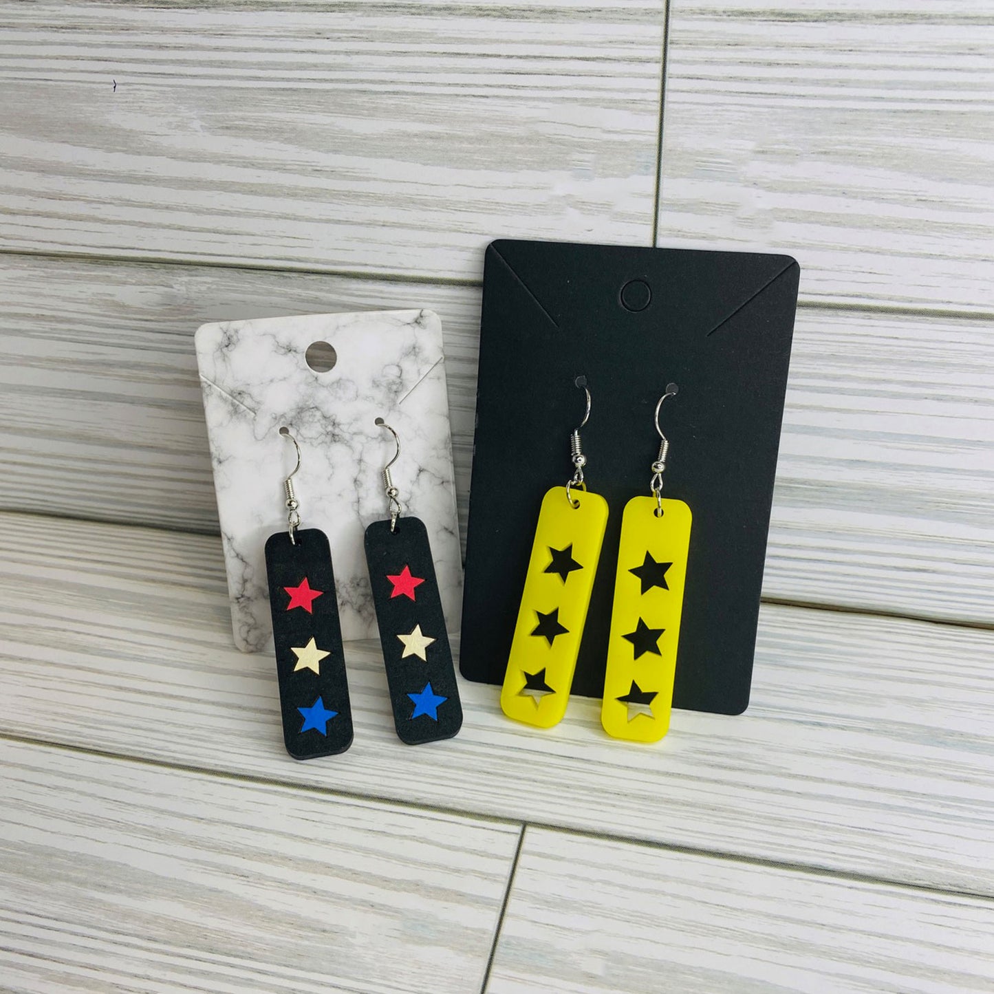 This adorable 4th of July Star bar dangle earrings are super versatile. You can choose to laser cut, score or engrave the stars on the inside. Score them if you want to paint the earring to make it easier. These are such a fast laser cut and will compliment any outfit. Great way to use scraps to sell earrings at craft shows & fairs. Check out the other bar designs on the catalog for other holidays and shapes.