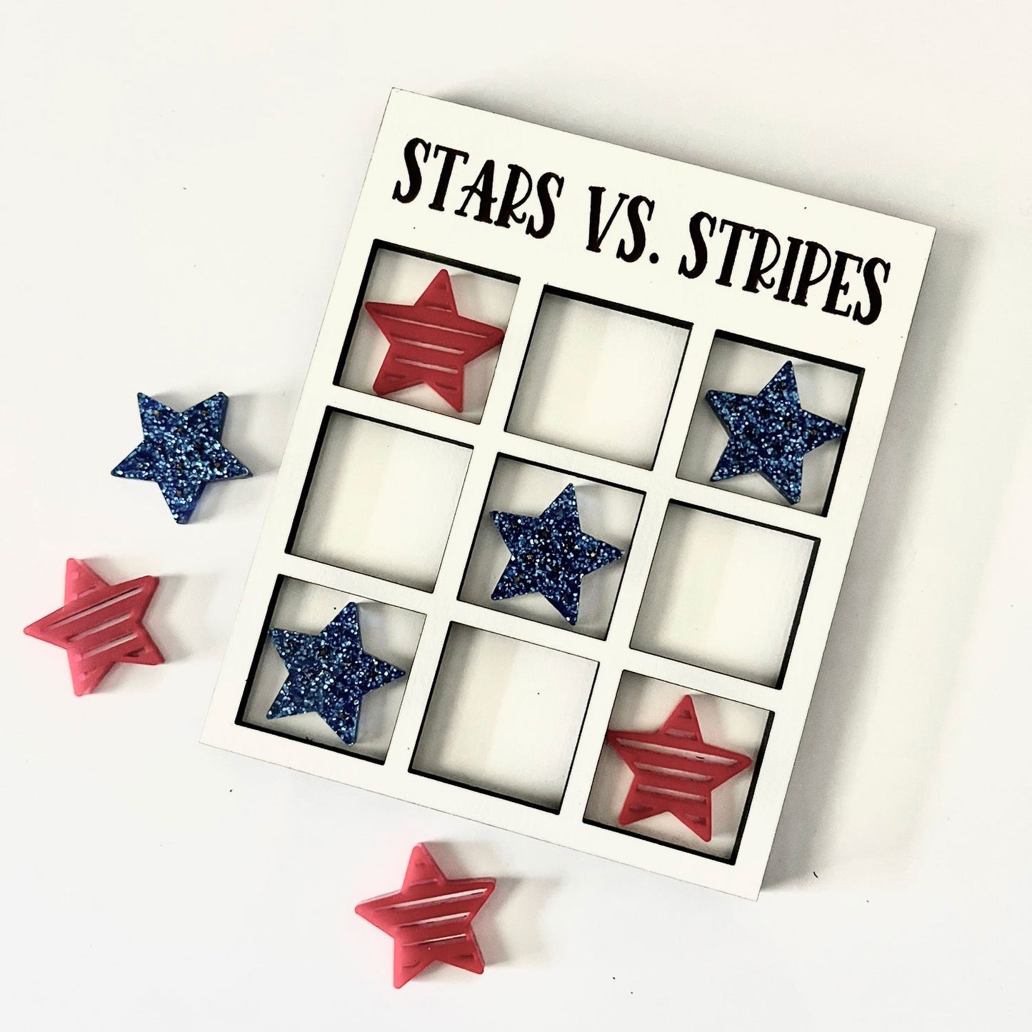A fun way to celebrate patriotic holidays with the kids. Stars vs. Stripes Tic Tac Toe! Use blue and red proof grade acrylic on these laser cut stars to save time on painting and for extending the life of your game. Add some glitter for a little pizzazz! Paint your proof grade draft board and mask and engrave the words for crisp lines. Make this in any size for whatever works for you. A cute item for craft fairs or DIY kits. Lots of fun.