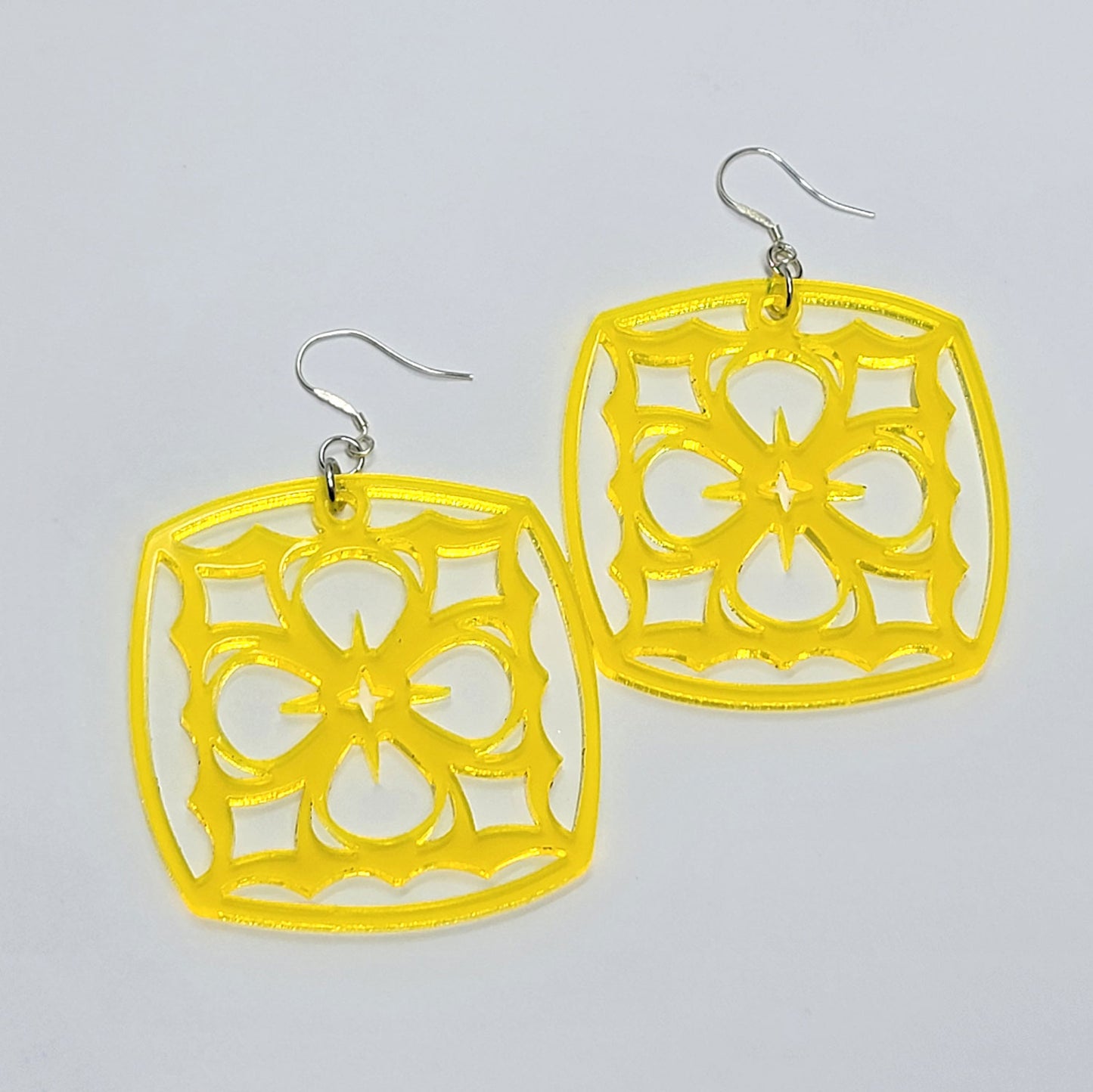 These summery floral earrings, perfect for laser cutting, will brighten up your day with your favorite color of acrylic.