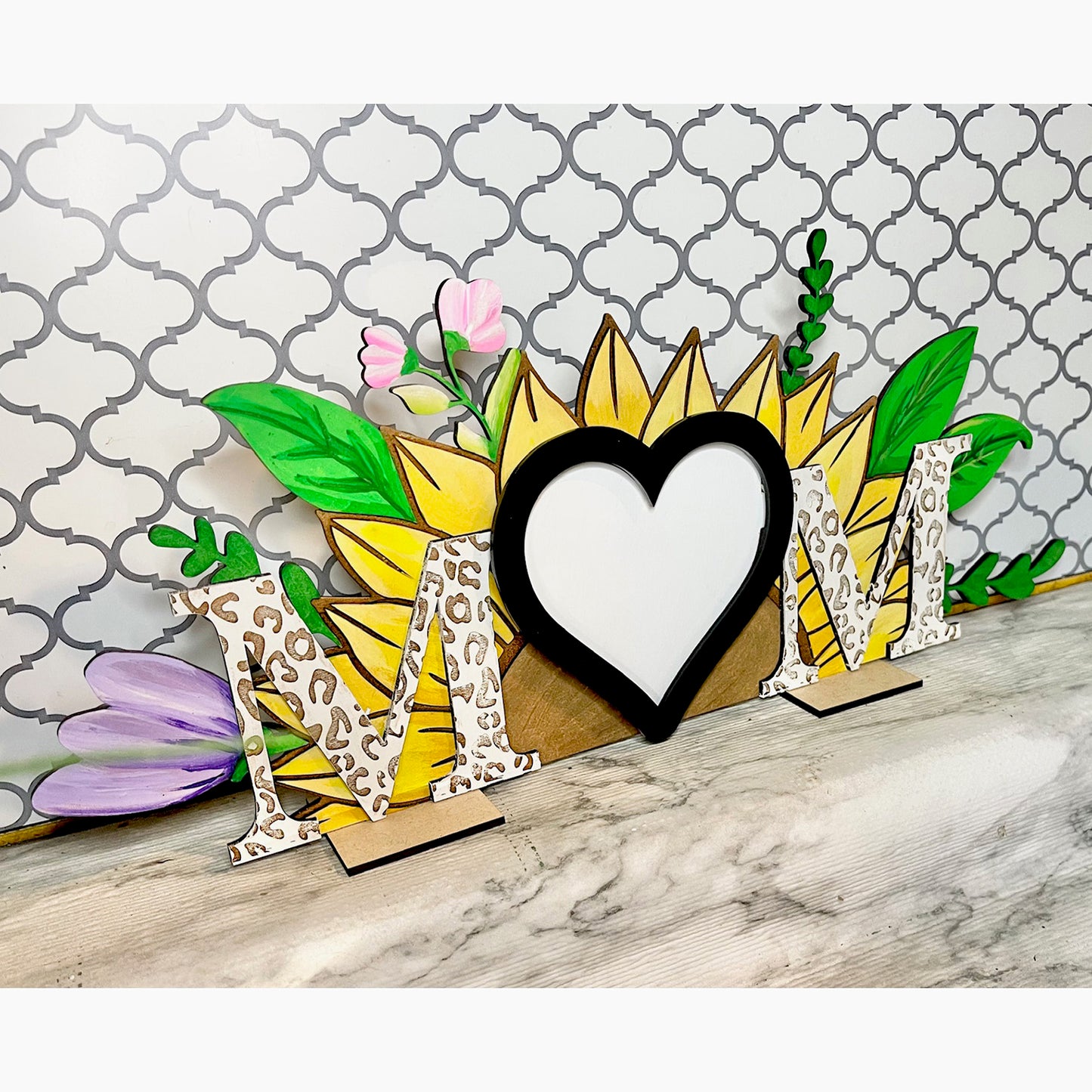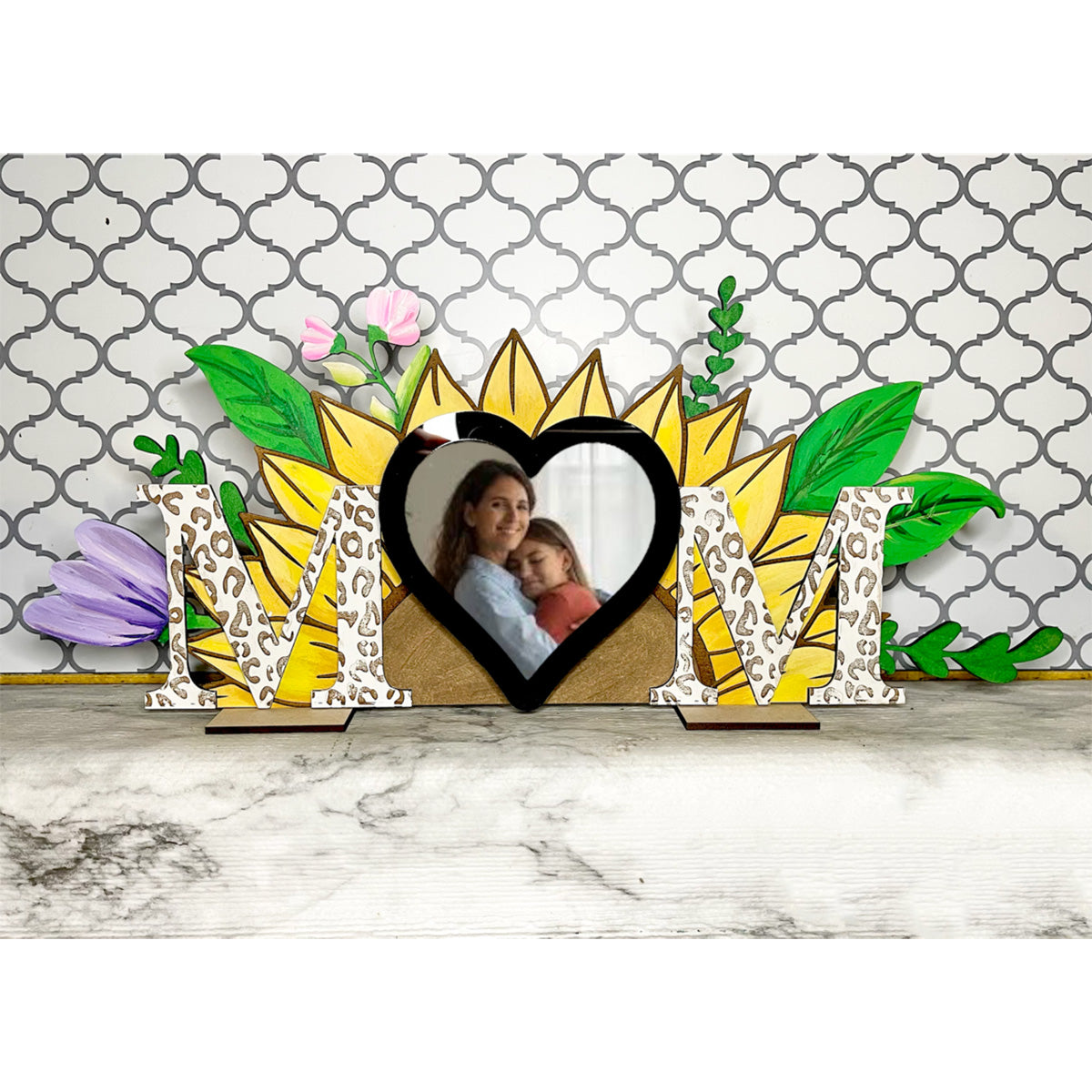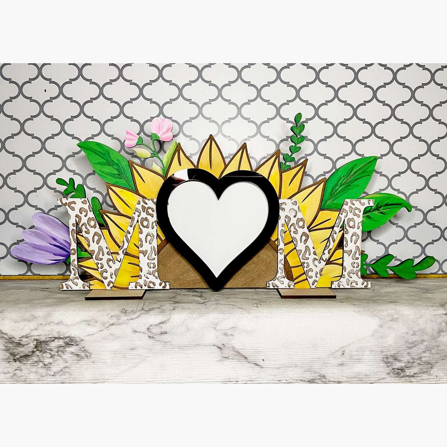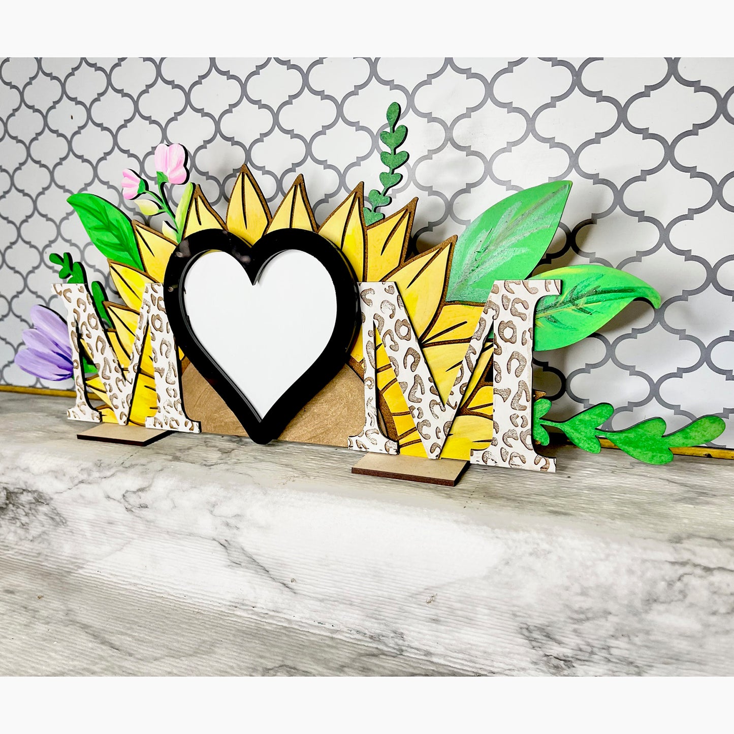 This sunflower mom stand is a cute and fun design. Hang it or use the two little square stands to let it sit on a shelf. It also has a frame on the front to add your photo or engrave the heart instead. This will surely bring a smile to that special woman we call mom.