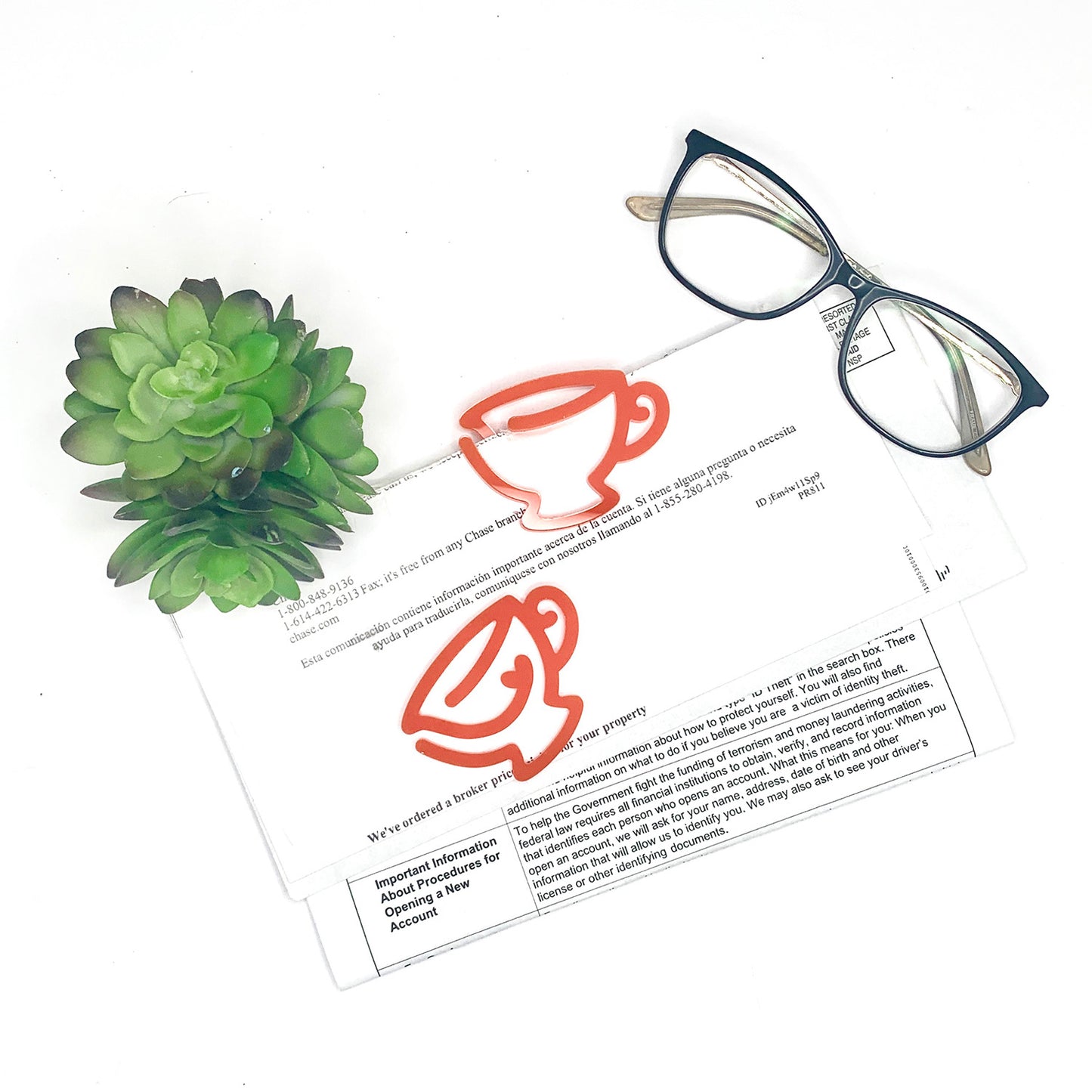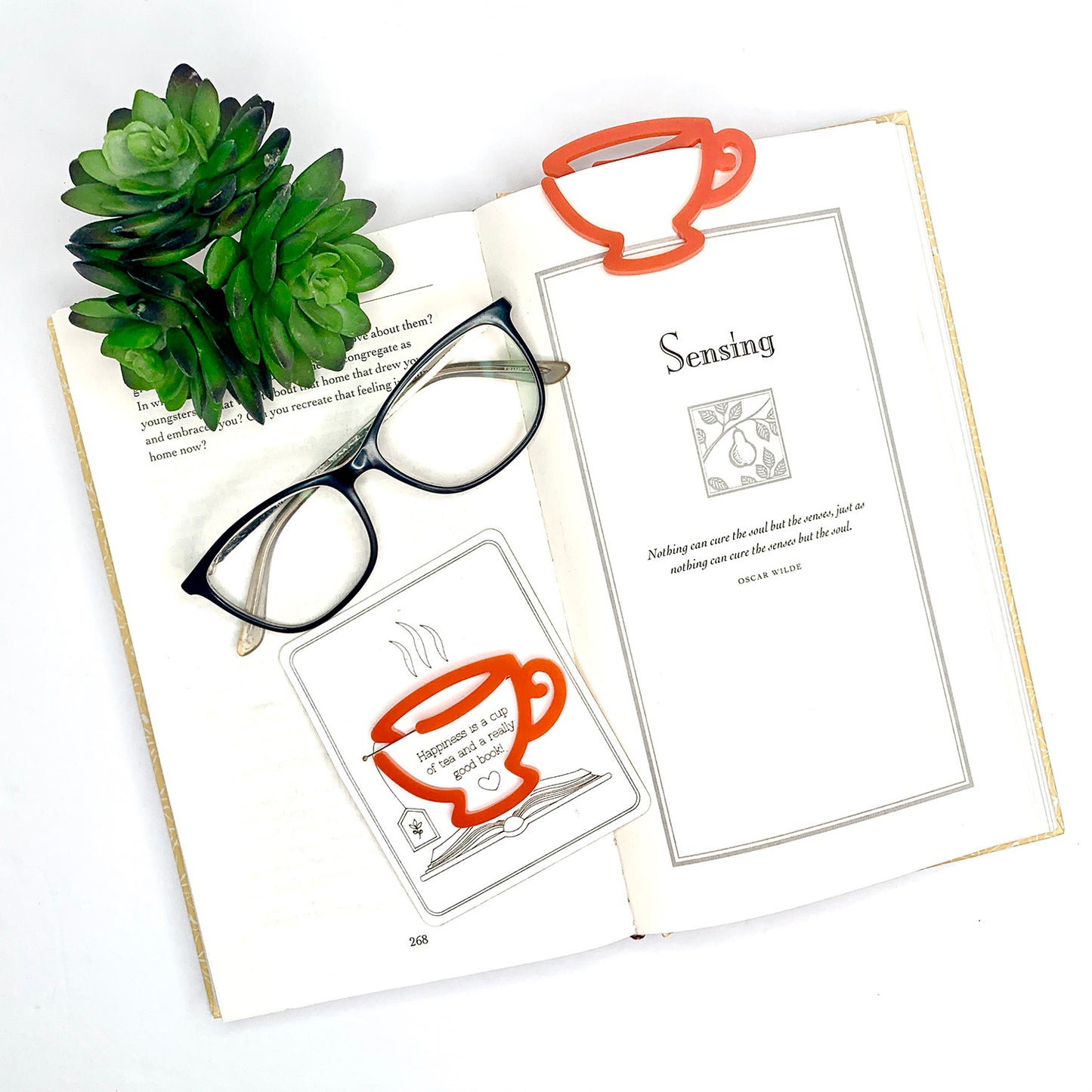 Tea Cup-Shaped Bookmark with Card Backer - Paperclip - Snack Bag Closure