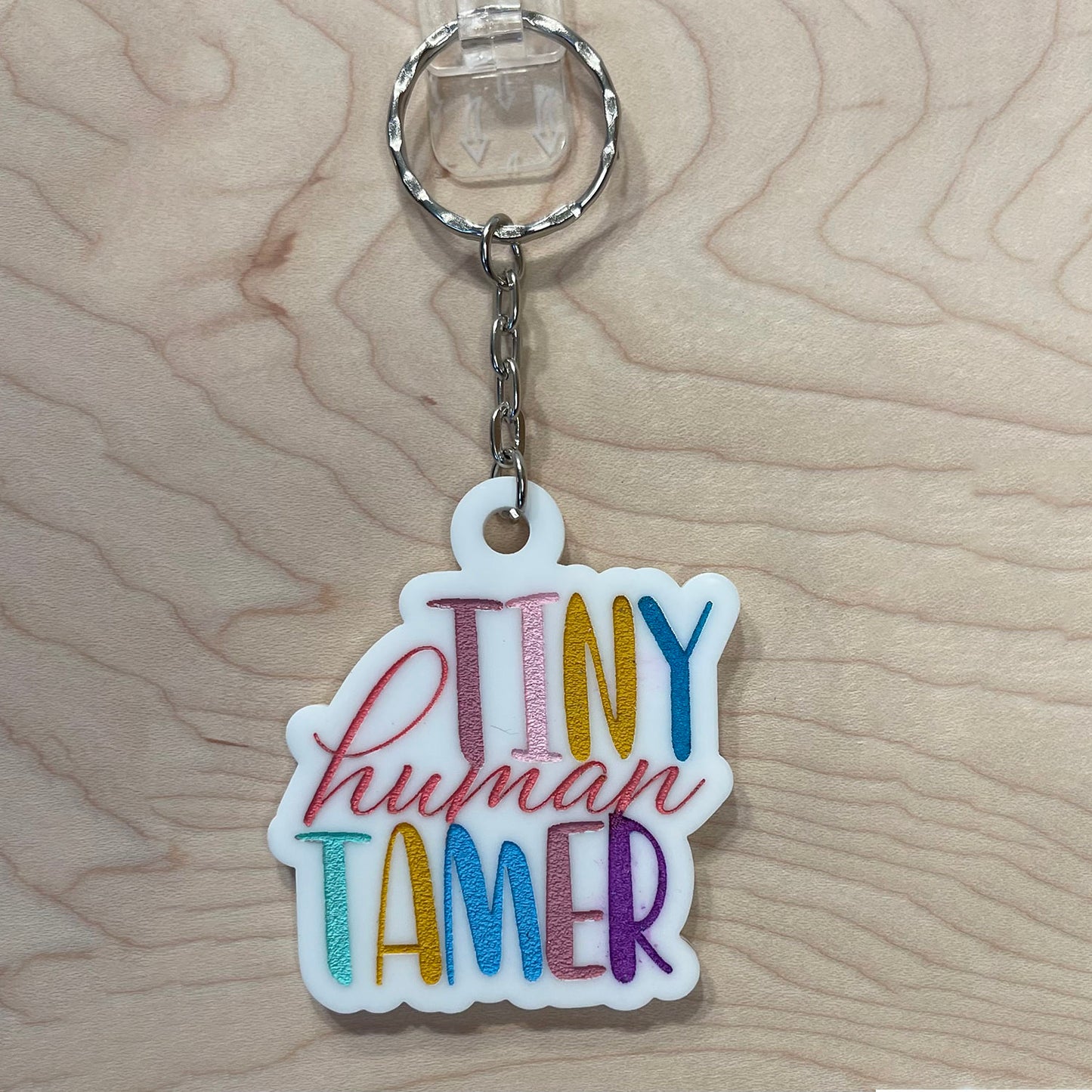 Cute and fun to make, these teacher-inspired keychains are perfect for laser cutting. Quick and easy, they make great gifts for our tiny human tamers. You can use wood or draft board, but I preferred to engrave white acrylic and do a paint fill. It really helps to make them stand out.