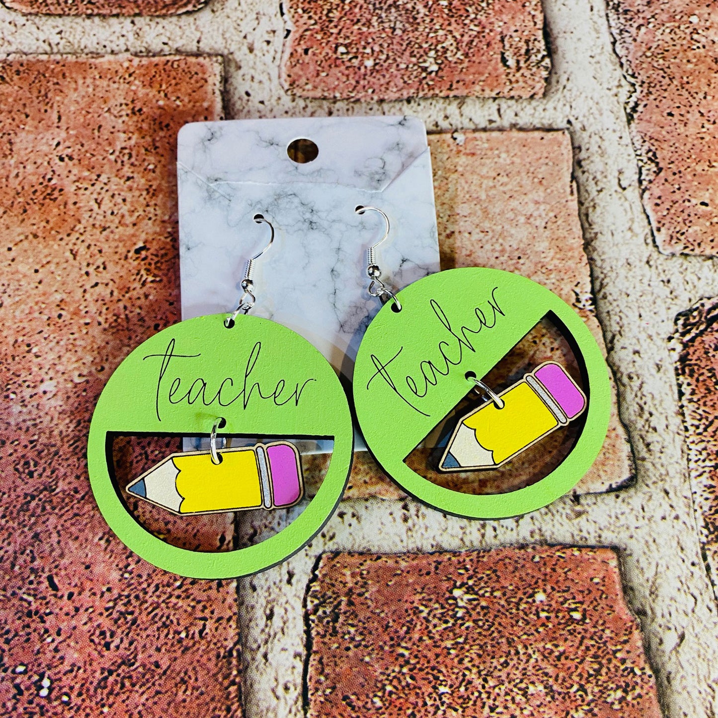How adorable are these teacher pencil earrings? Perfect for the teacher in your life. Add these to a teacher appreciation gift for some homemade flair. Paint their school colors to add extra personalization. Fast laser cut and a great way to use scraps! Bring these to your next craft fair.