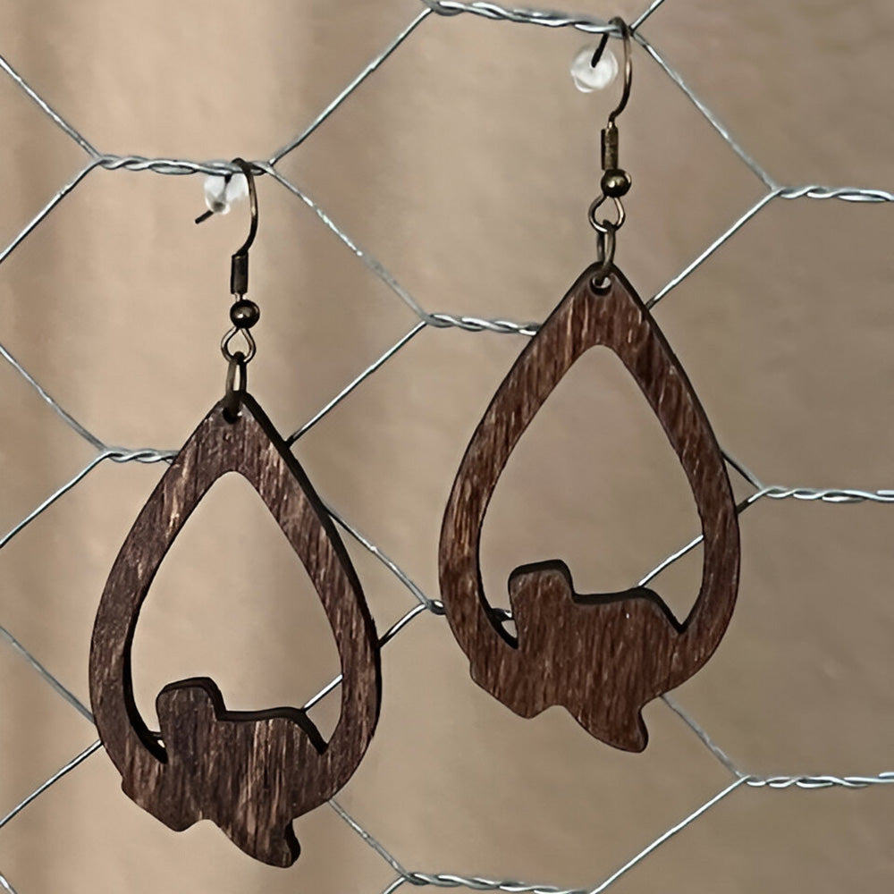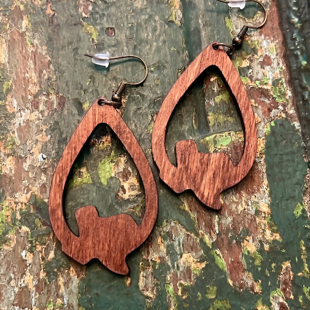 Love Texas? Let everyone know! These Texas teardrop dangles are shown in red oak stained wood. The file may be resized.