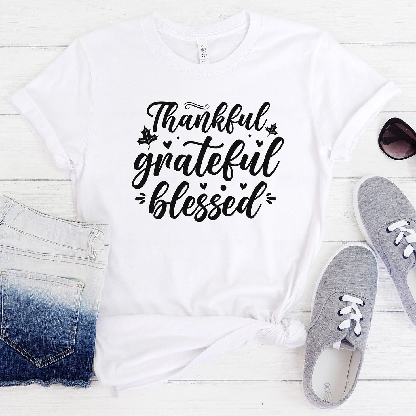 Express your gratitude and count your blessings with our "Thankful Grateful Blessed" laser cut graphic. This beautiful and heartwarming design serves as a constant reminder to appreciate life's little joys and cherish the moments that truly matter. The high-quality iron-on material ensures long-lasting wear and easy application. Simply iron on to any desired item or surface such as a shirt, tote bag, mug, or anything else you want to show off.