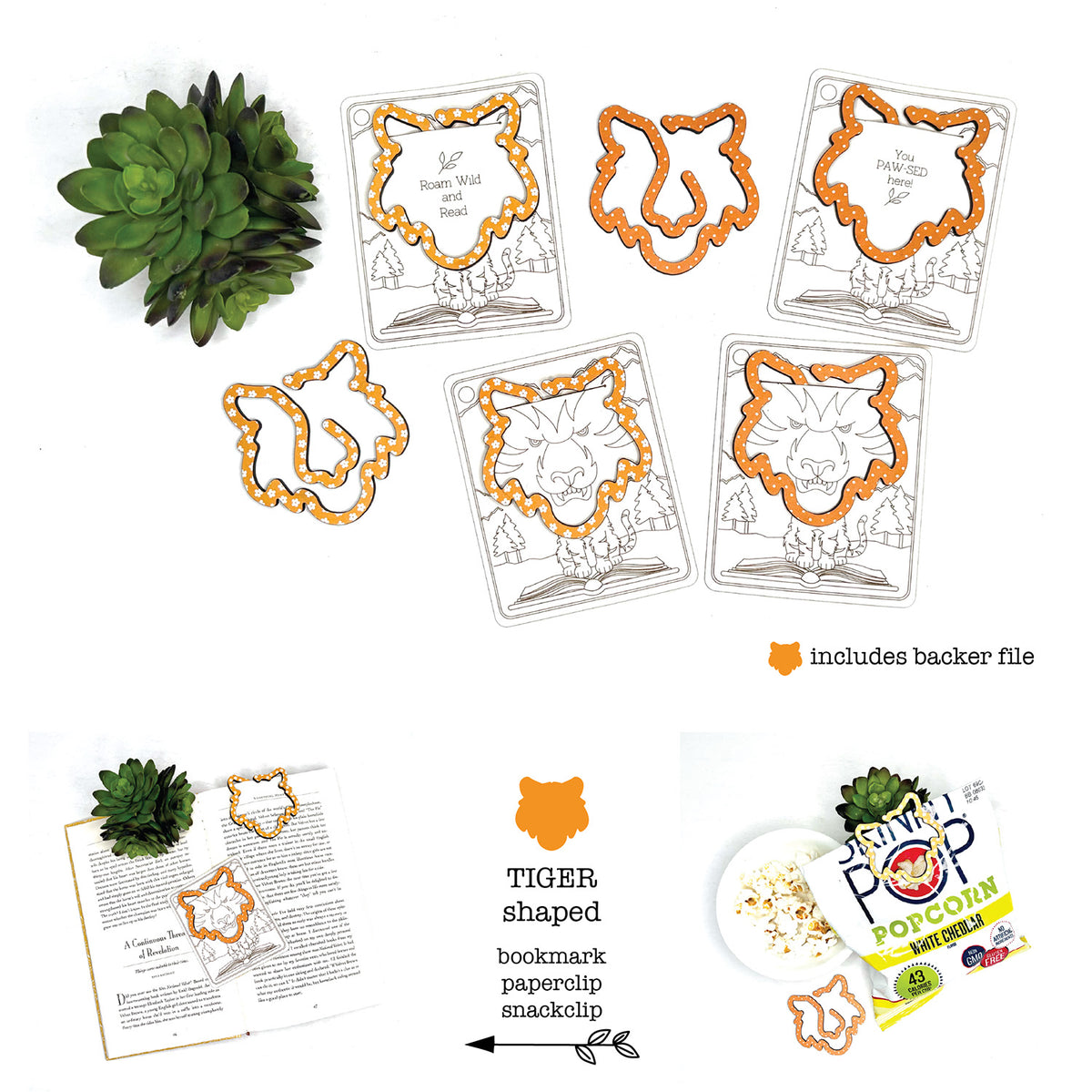Tiger Shaped Bookmark with Card Backer - Paperclip - Snack Bag Closure