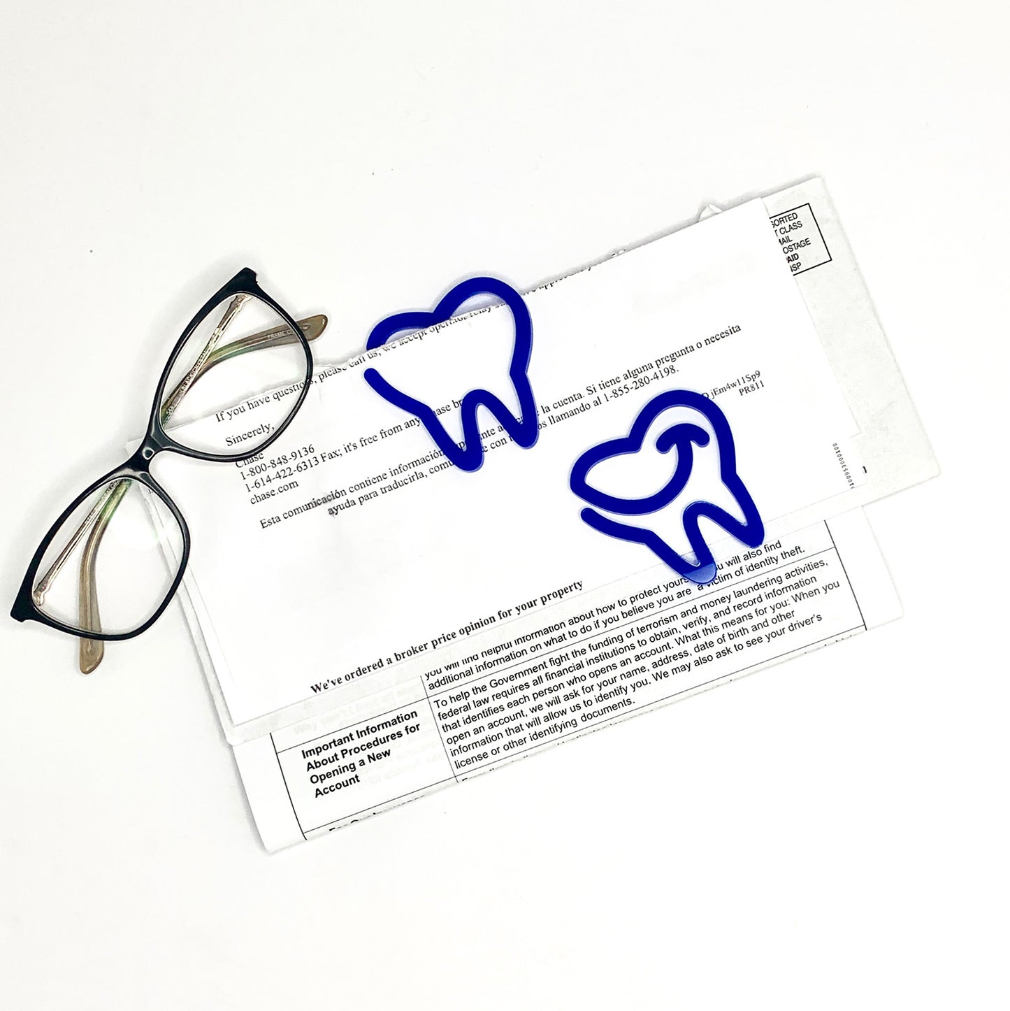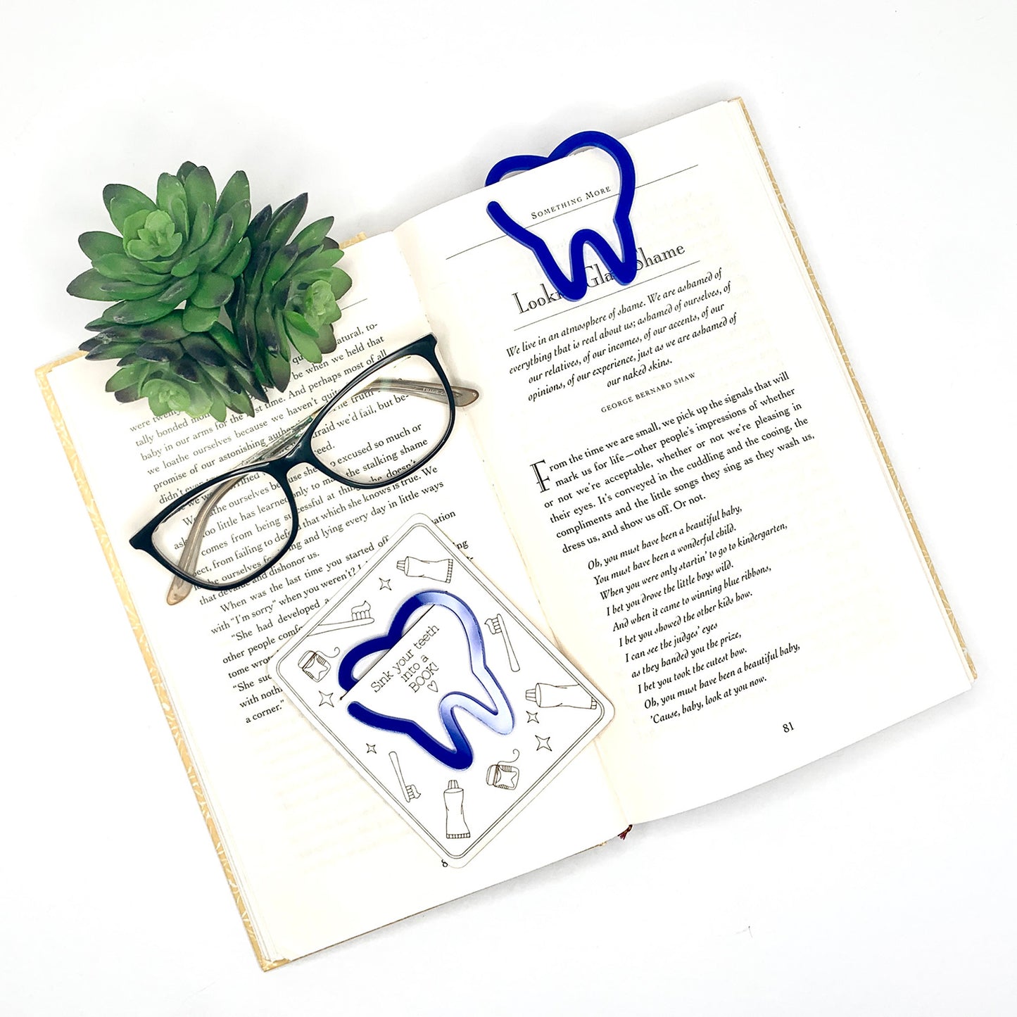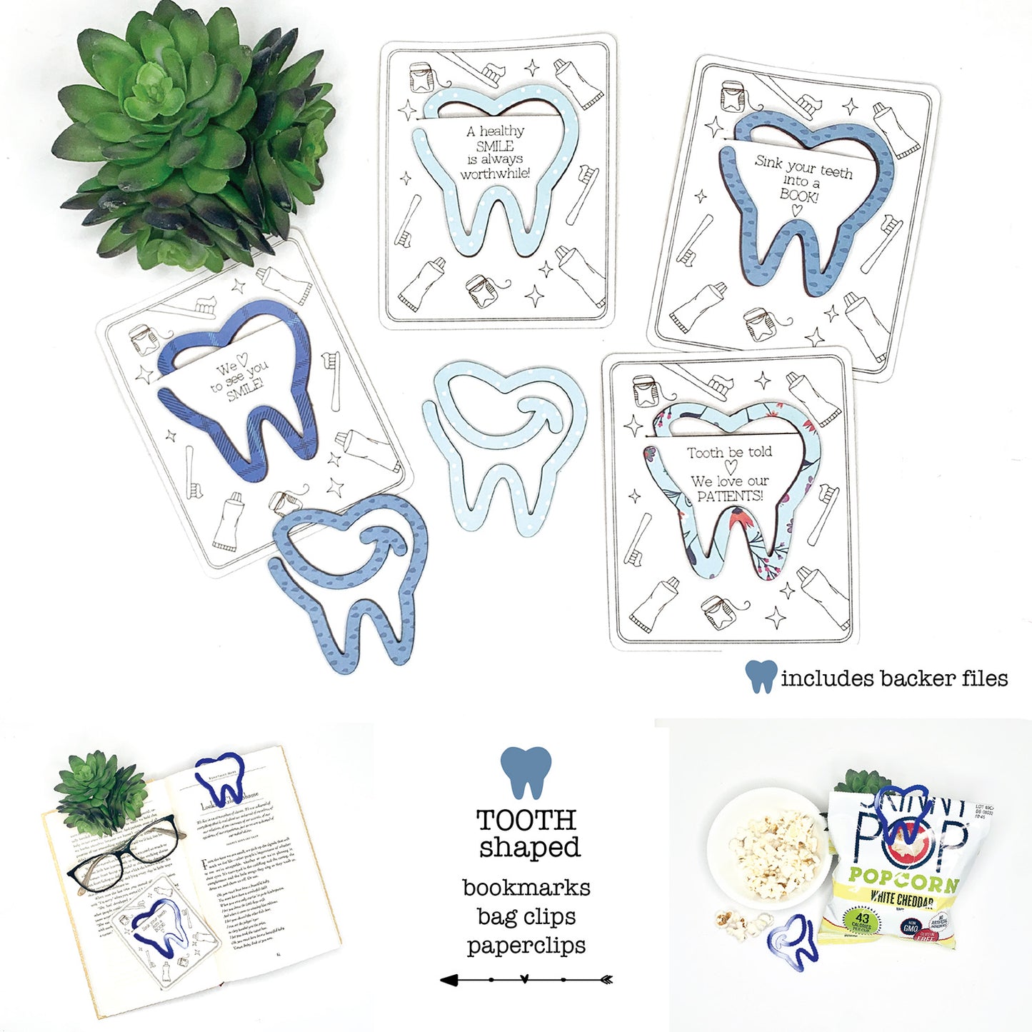 Tooth-Shaped Bookmark with Card Backer - Paperclip - Snack Bag Closure