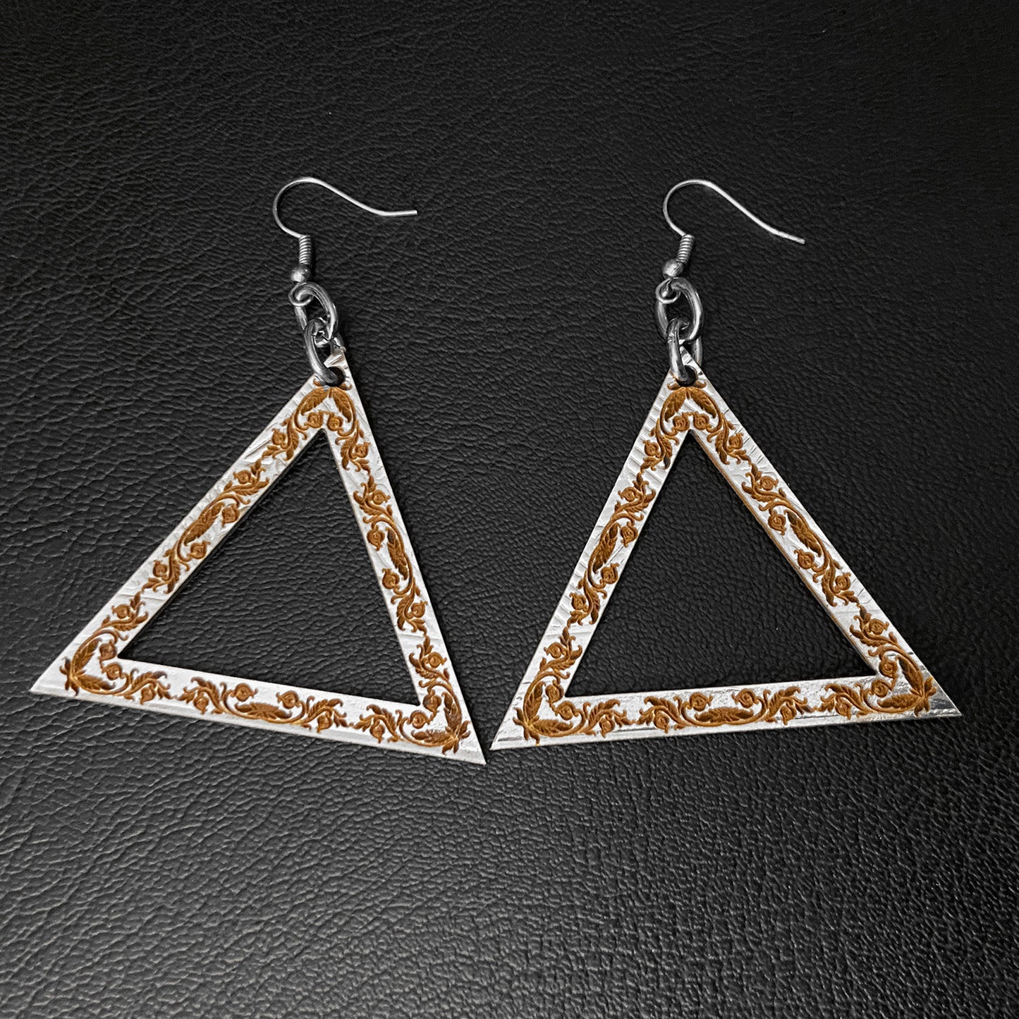 Influence by the stylized designs of the Art Deco era, these triangle earrings add a dash of elegance to your look. A perfect accessory for anyone who loves the charm of past eras yet lives in the present.