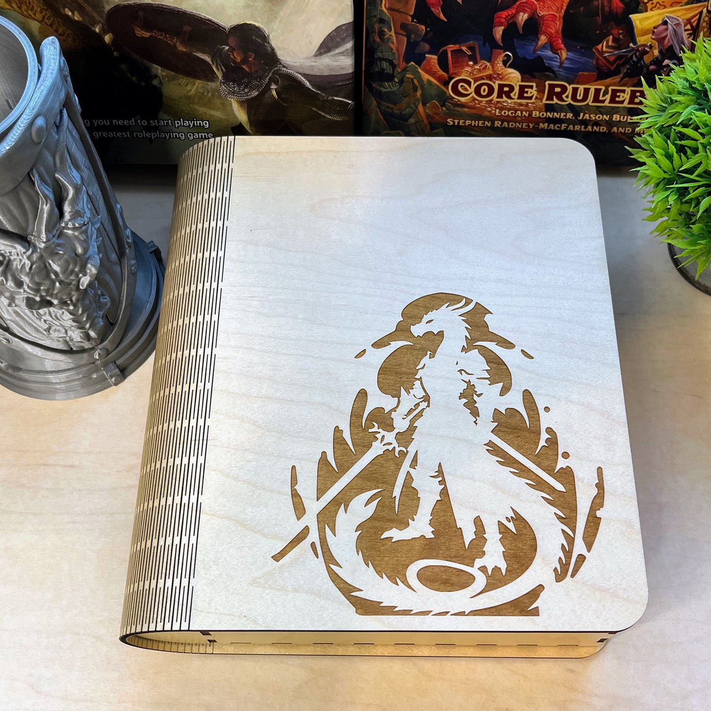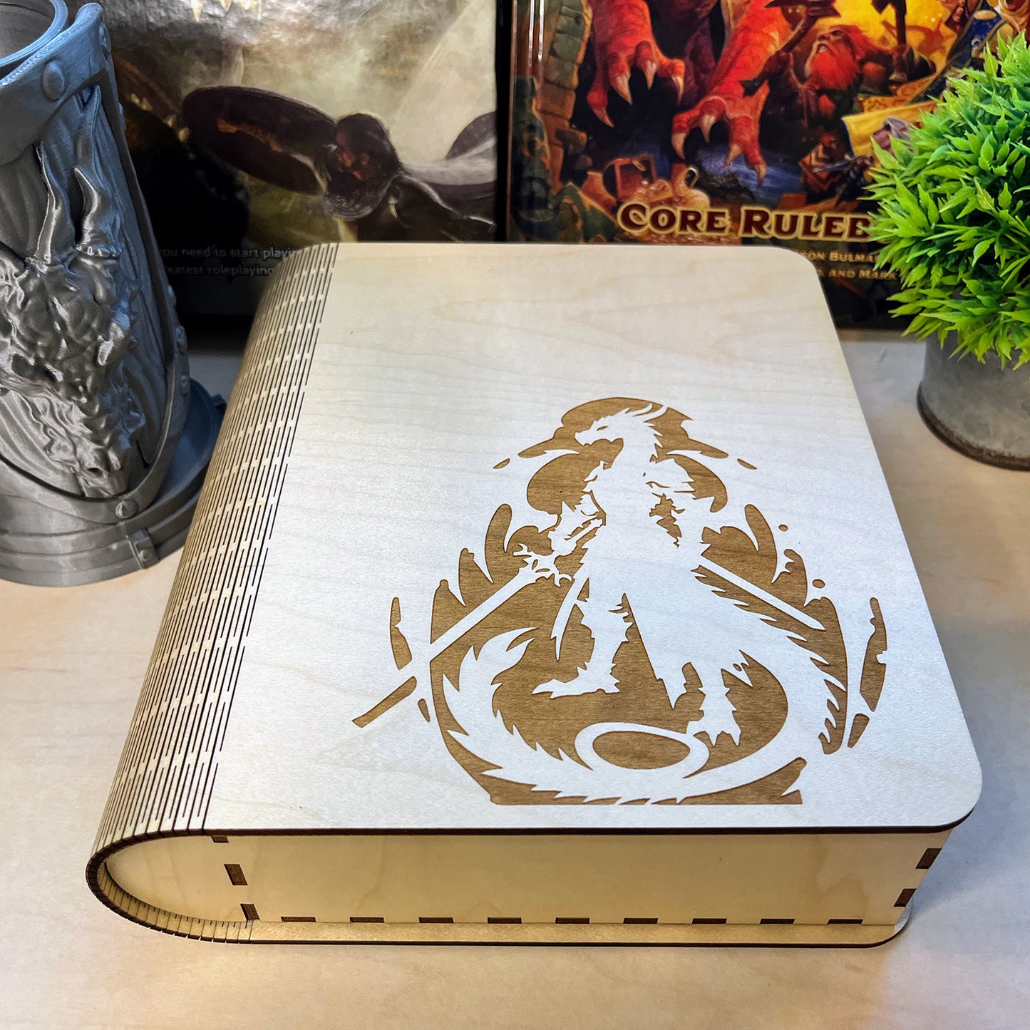 Combine this book cover with the “TTRPG Character Book: Book Lid” and a tray of your choice to create the ultimate accessory for game night!