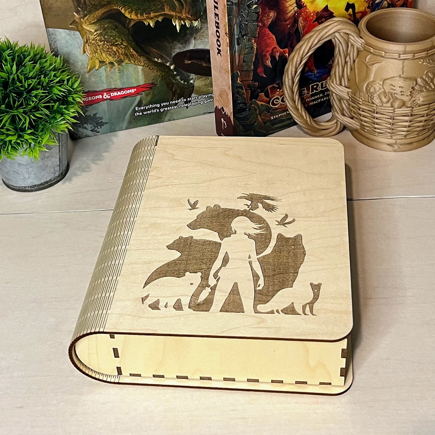 Table-top role-playing games are a great way to spend game night with friends and family! Add a bit of spice to the experience by providing everyone with their own books to store everything they need for their characters. The cover can even be further customized with the blank area above the image to add a character or player name! This design image is perfect for the nature loving warrior.