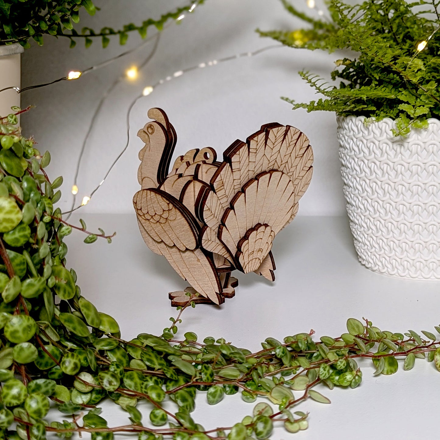 A festive turkey bird ornament, perfect for adding a touch of Thanksgiving cheer to your holiday decor. With its plump body and colorful feathers, this cheerful bird is sure to bring a smile to your face.