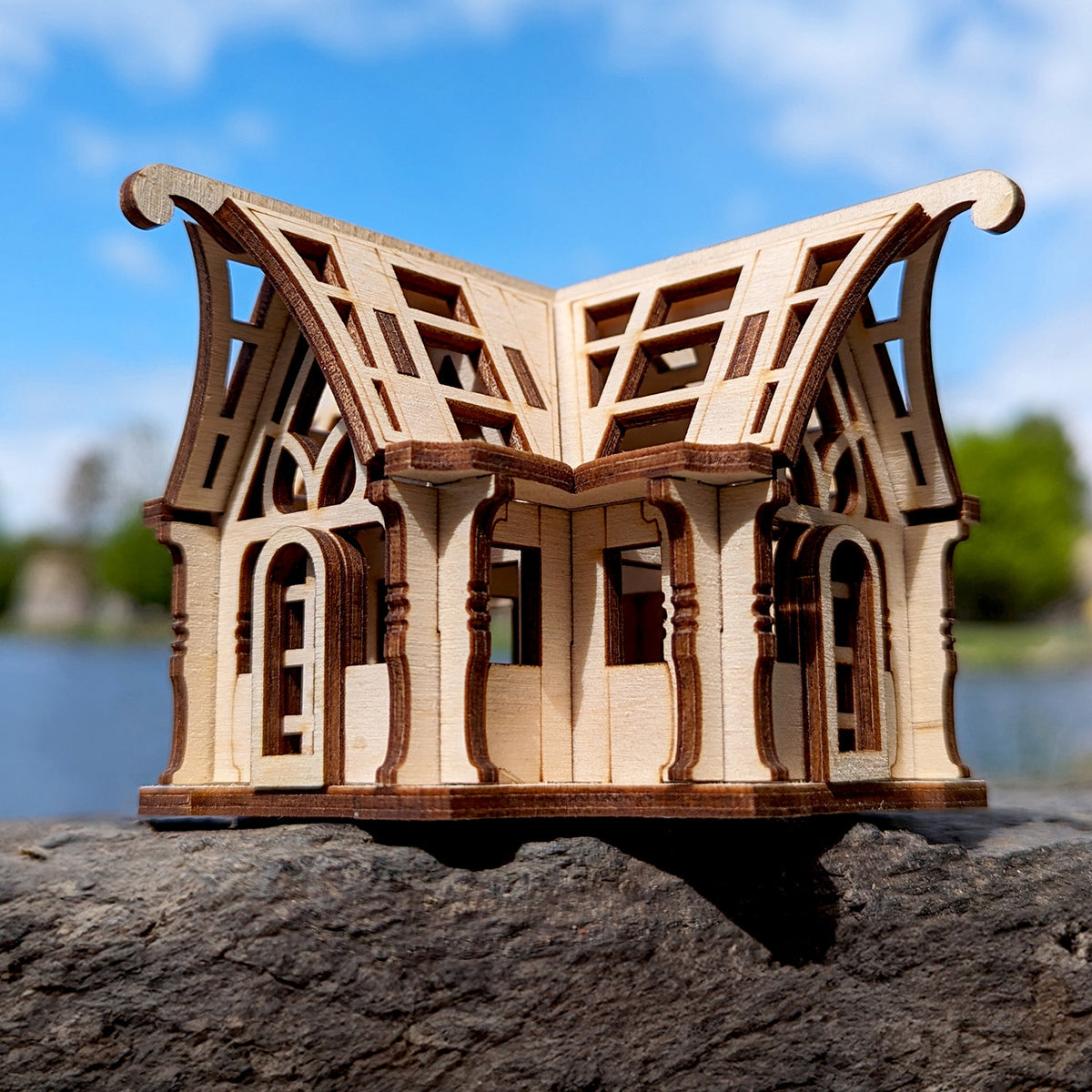 This miniature greenhouse design exudes botanical charm and vintage aesthetics. Its intricate forms and Victorian-style elements make it a captivating addition to any collection. Perfect for display purposes, it adds a touch of whimsy to shelves, desks, or display cases.