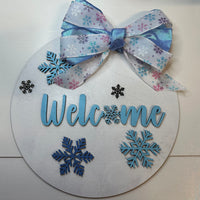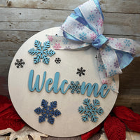 Greet the holiday season with this "Welcome Christmas" snowflake sign. A beautiful addition to your winter and Christmas decorations for a cheerful entryway. Optional two different welcome cutouts.