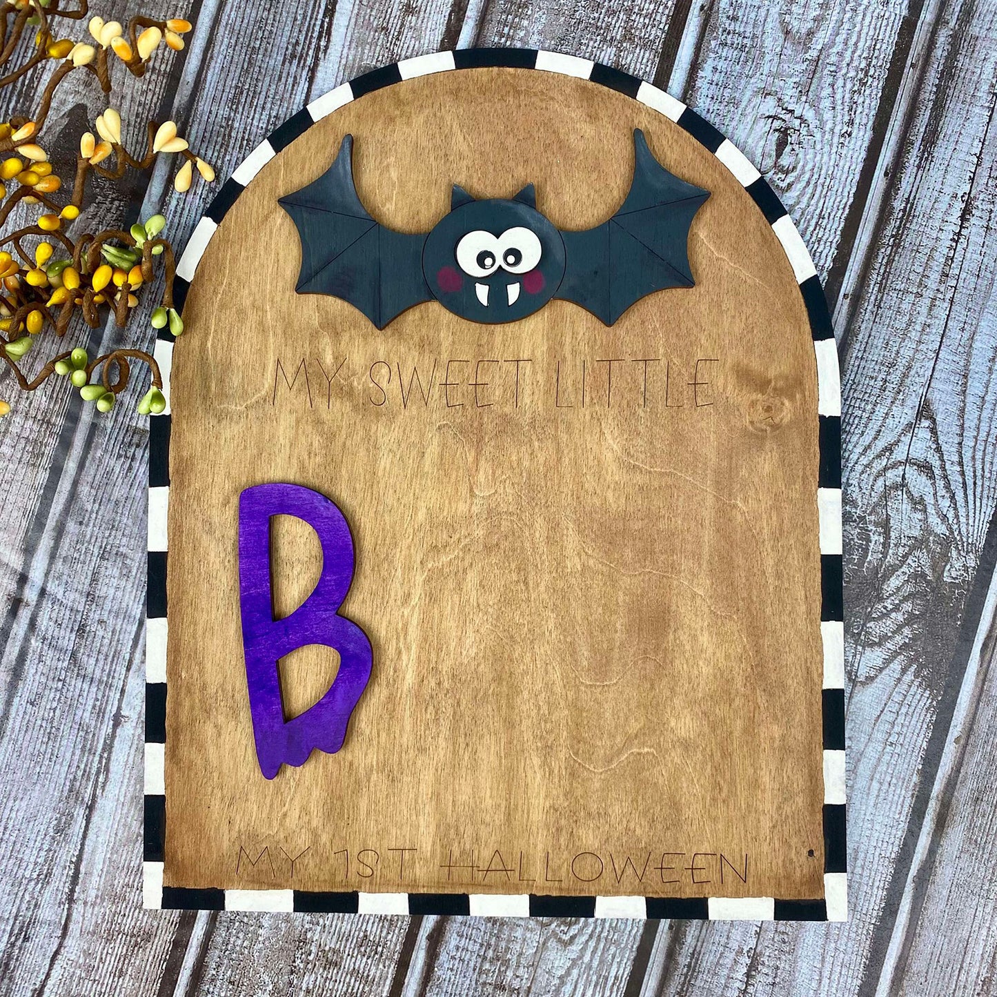 Capture the magic of your little one's first Halloween with this charming laser-cut file. This delightful design features a cute bat with whimsical eyes, the phrase "My Sweet Little Boo," and an area to personalize with your baby's footprint. The playful, oversized "B" adds a pop of color and personality to the design, making it the perfect keepsake or gift for new parents.