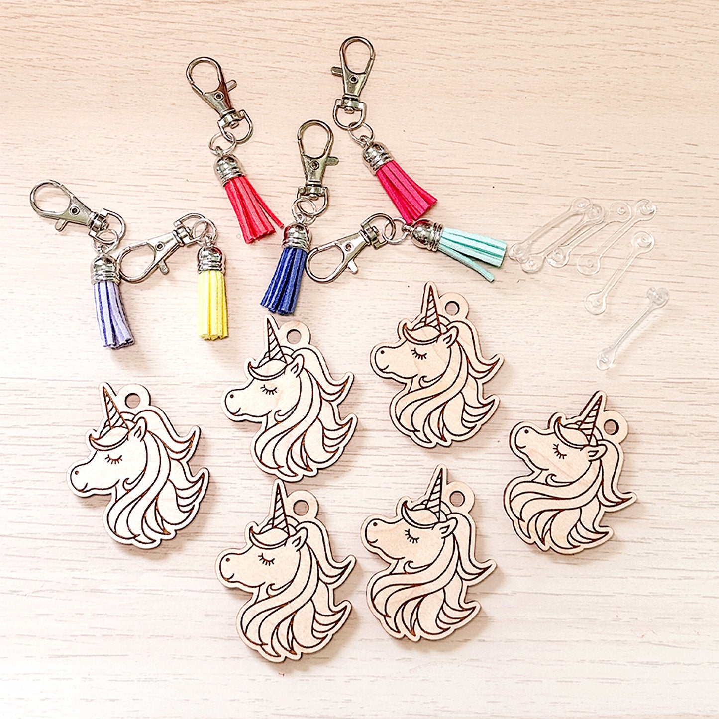 This cute unicorn keychain is perfect for your laser cut accessories. Makes great coloring projects for kids.