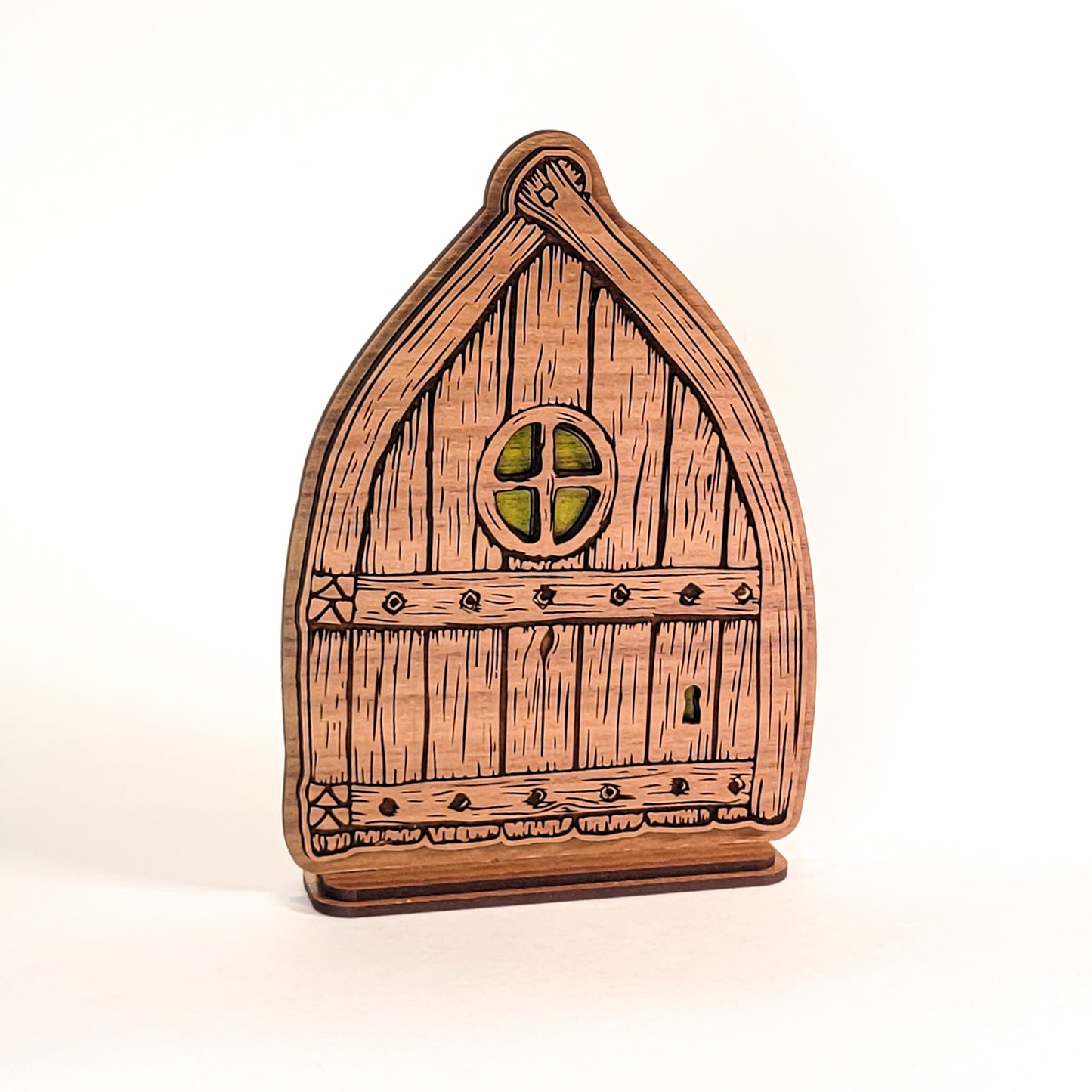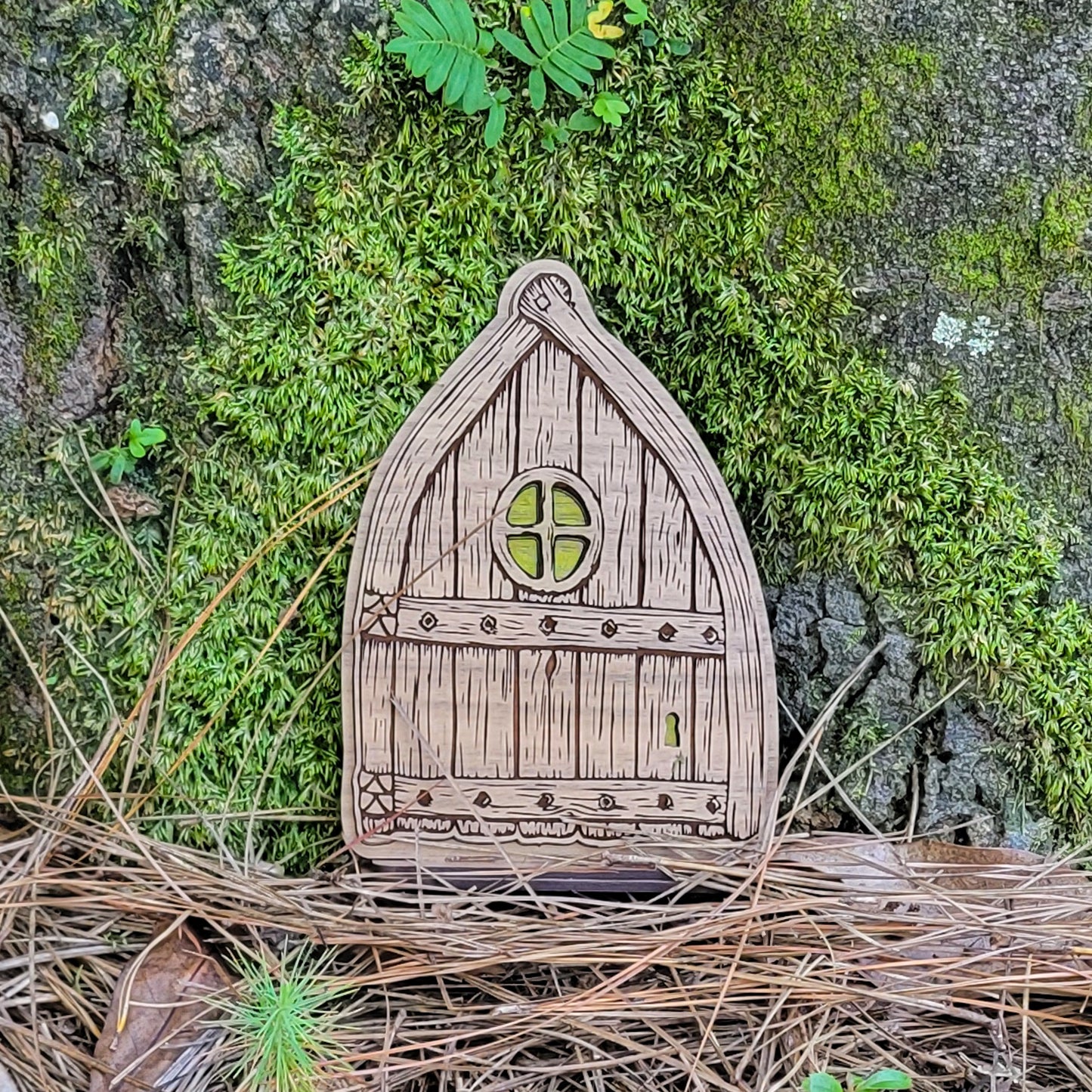 Introducing the Arched Cottage Fairy Door with Stand - A Magical Portal to Imagination, perfect for laser cutting!