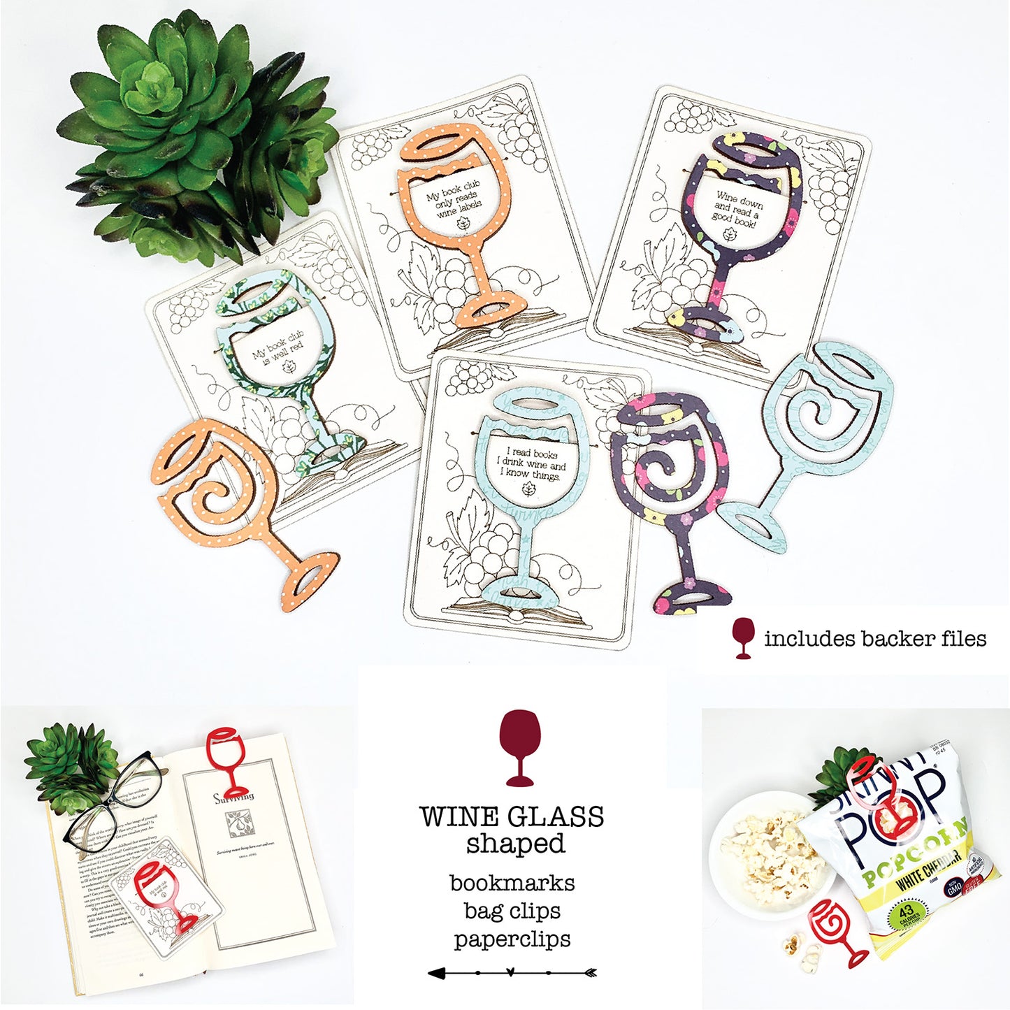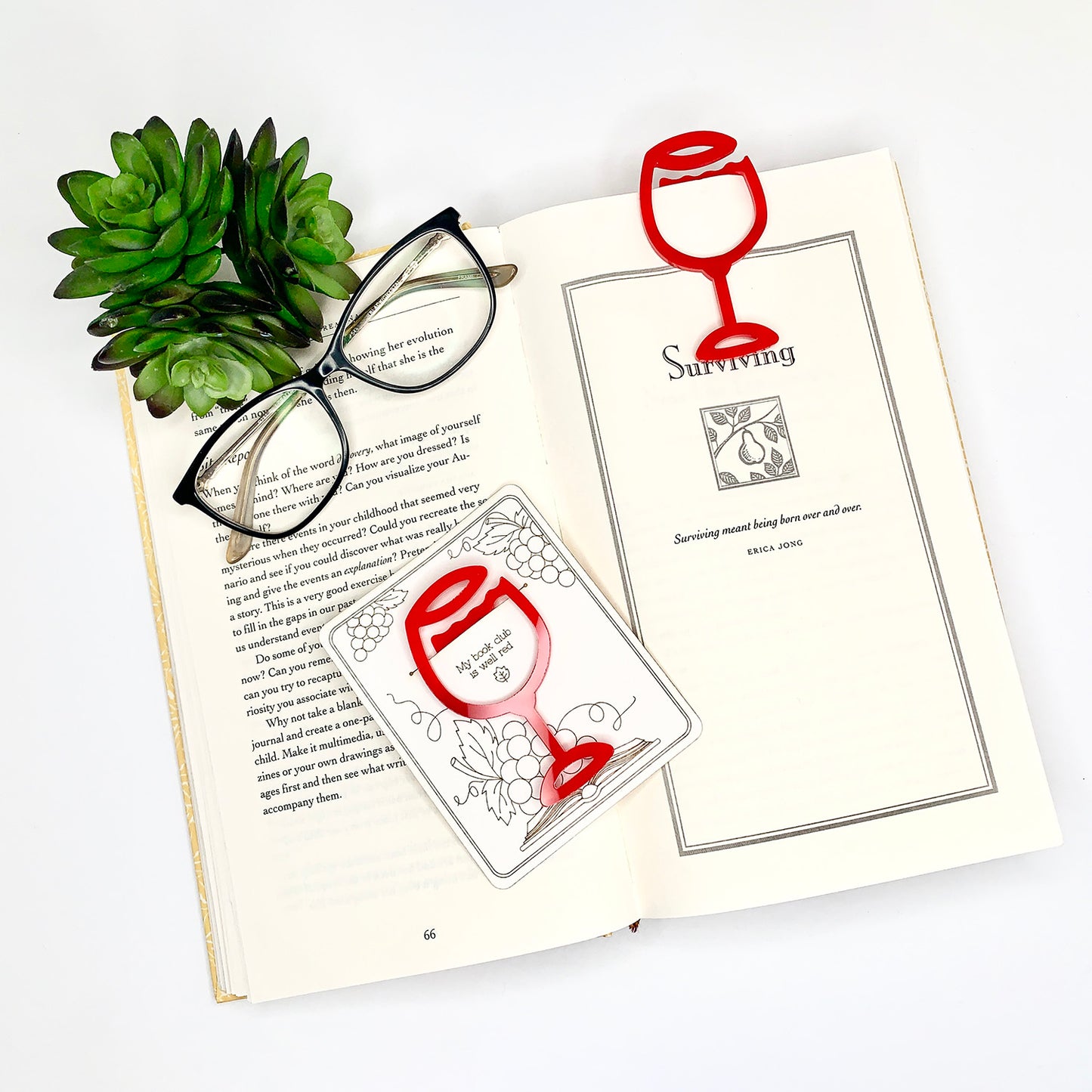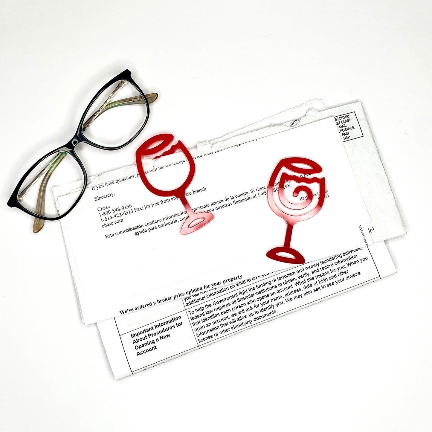 Wine Glass-Shaped Bookmark with Card Backer - Paperclip - Snack Bag Closure