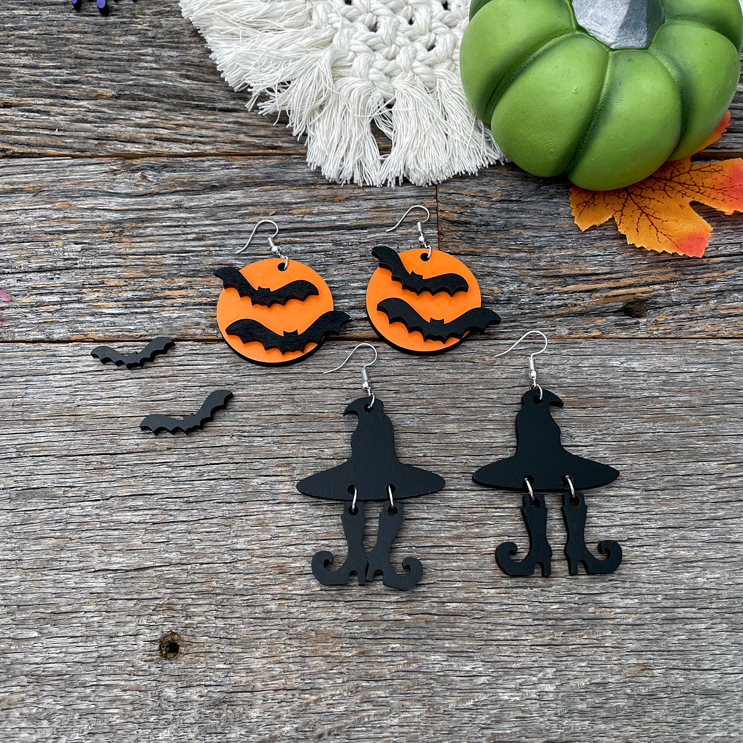 Add a dash of enchantment to your Halloween look with these charming and spooktacular Witch Hat & Boots Halloween Earrings. The size of the earrings is approximately 1.75" W x 2.25" H. Laser cut from colored acrylic or paint with color acrylic pens if cut from wood. Takes a little over a minute to print. Complete your Halloween earrings with the
