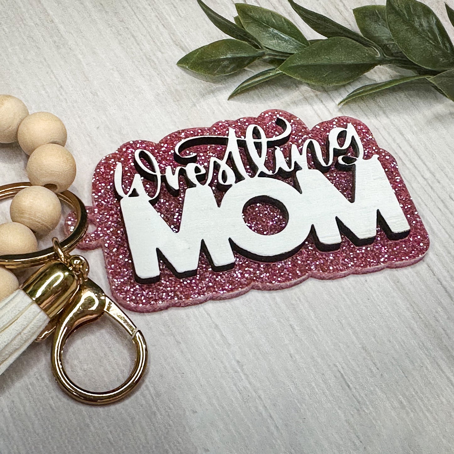 Wrestling Mom Layered Keychain